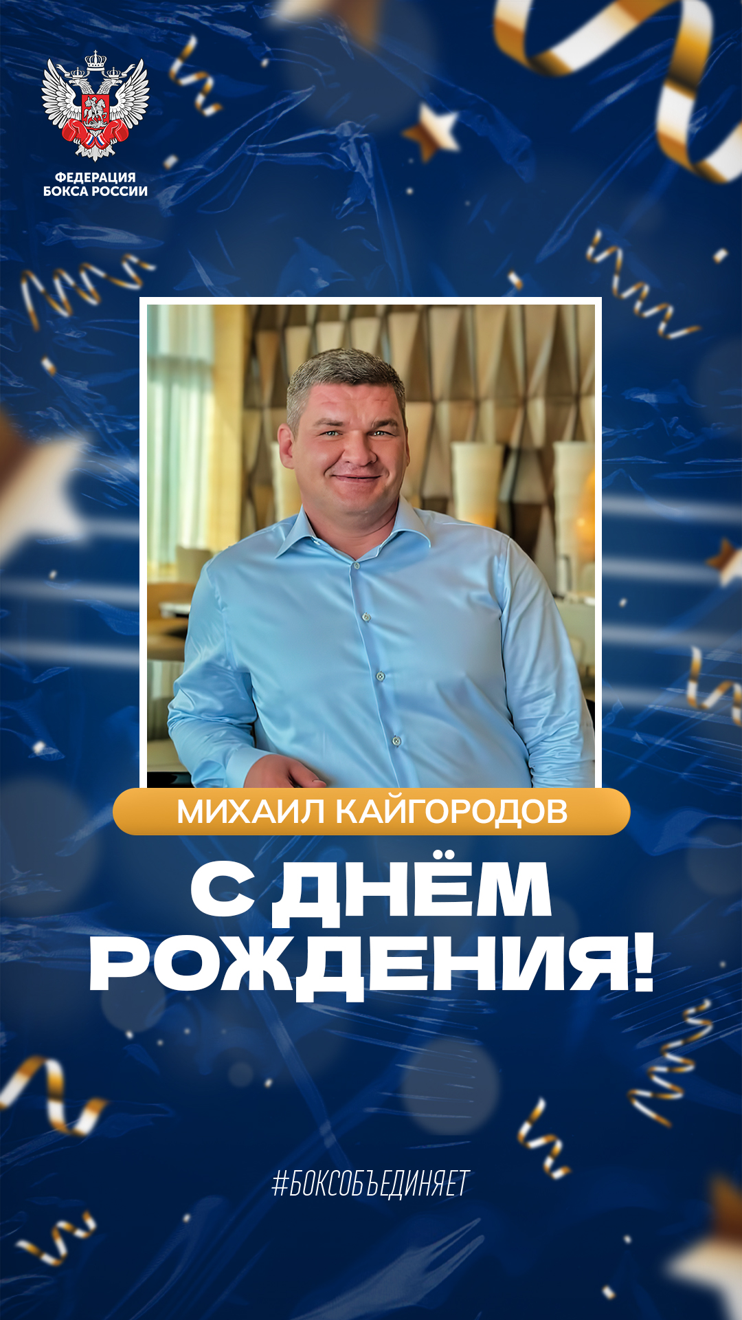 Коллектив Федерации бокса России поздравляет Михаила Сергеевича с праздником и благодарит за большой вклад в развитие вида спорта "бокс". Желаем профессиональных достижений и личных успехов, крепкого здоровья, благополучия и удачи в реализации планов.