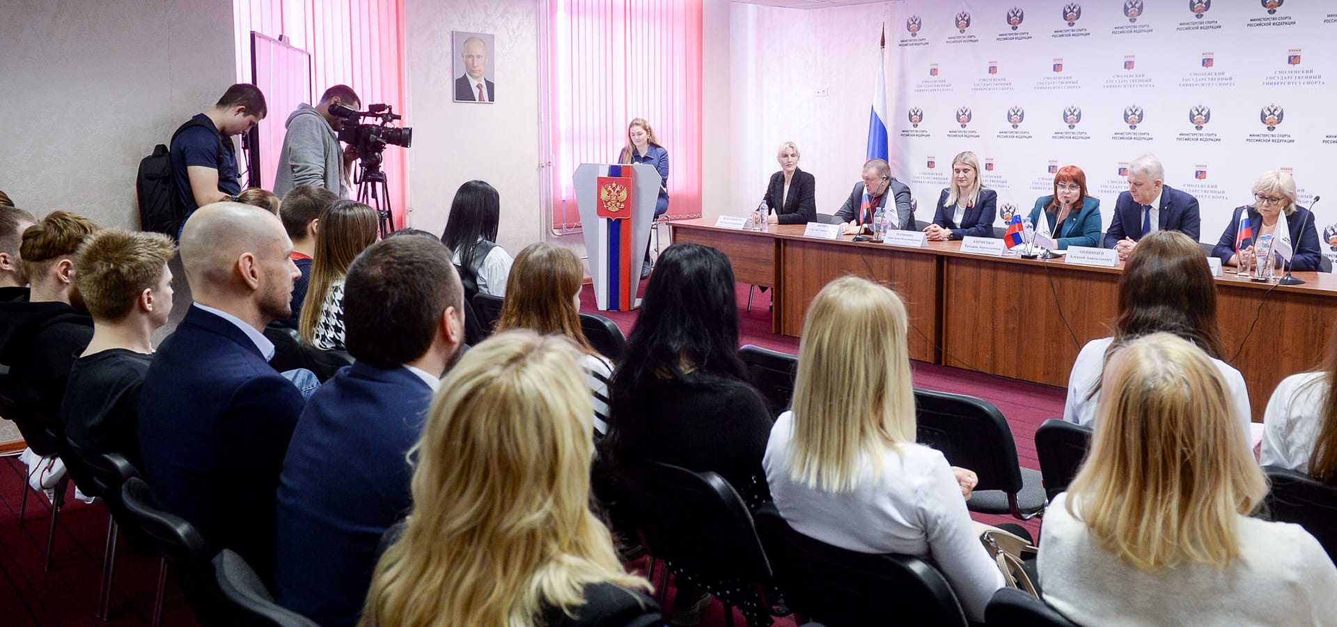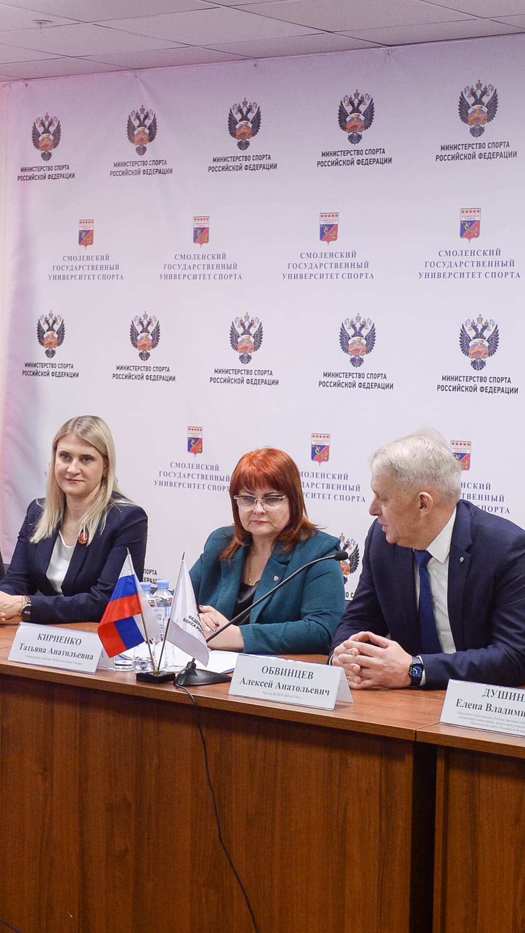 С журналистами и студентами пообщались генеральный секретарь Федерации бокса России Татьяна Кириенко, ректор Смоленского государственного университета спорта Алексей Обвинцев и руководитель Федерации баскетбола Смоленской области Сергей Фомин.