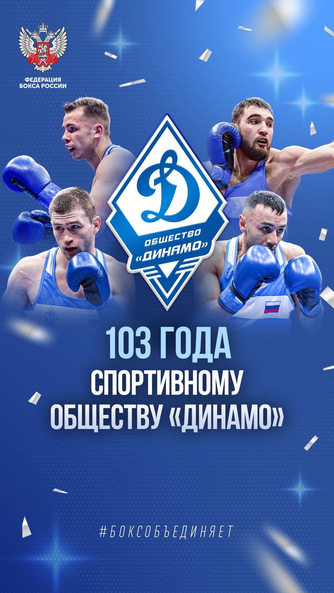 Федерация бокса России поздравляет общество «Динамо» с днём рождения! За время существования вы стали не просто физкультурно-спортивной организацией, а настоящей легендой, которую знают и уважают не только в России, но и за её пределами.