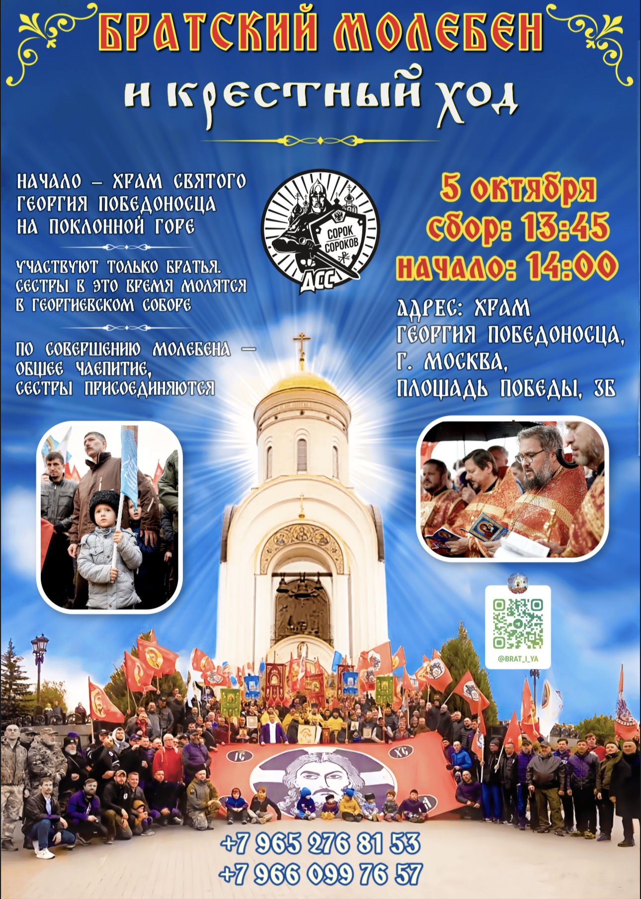 Федерация бокса России приглашает всех желающих принять участие в крестном ходе. Сбор участников Братского молебна и Крестного хода с 13:30 у Храма Георгия Победоносца на поклонной горе, по адресу: г. Москва, площадь Победы, 3Б. По совершению молебна – общее чаепитие.