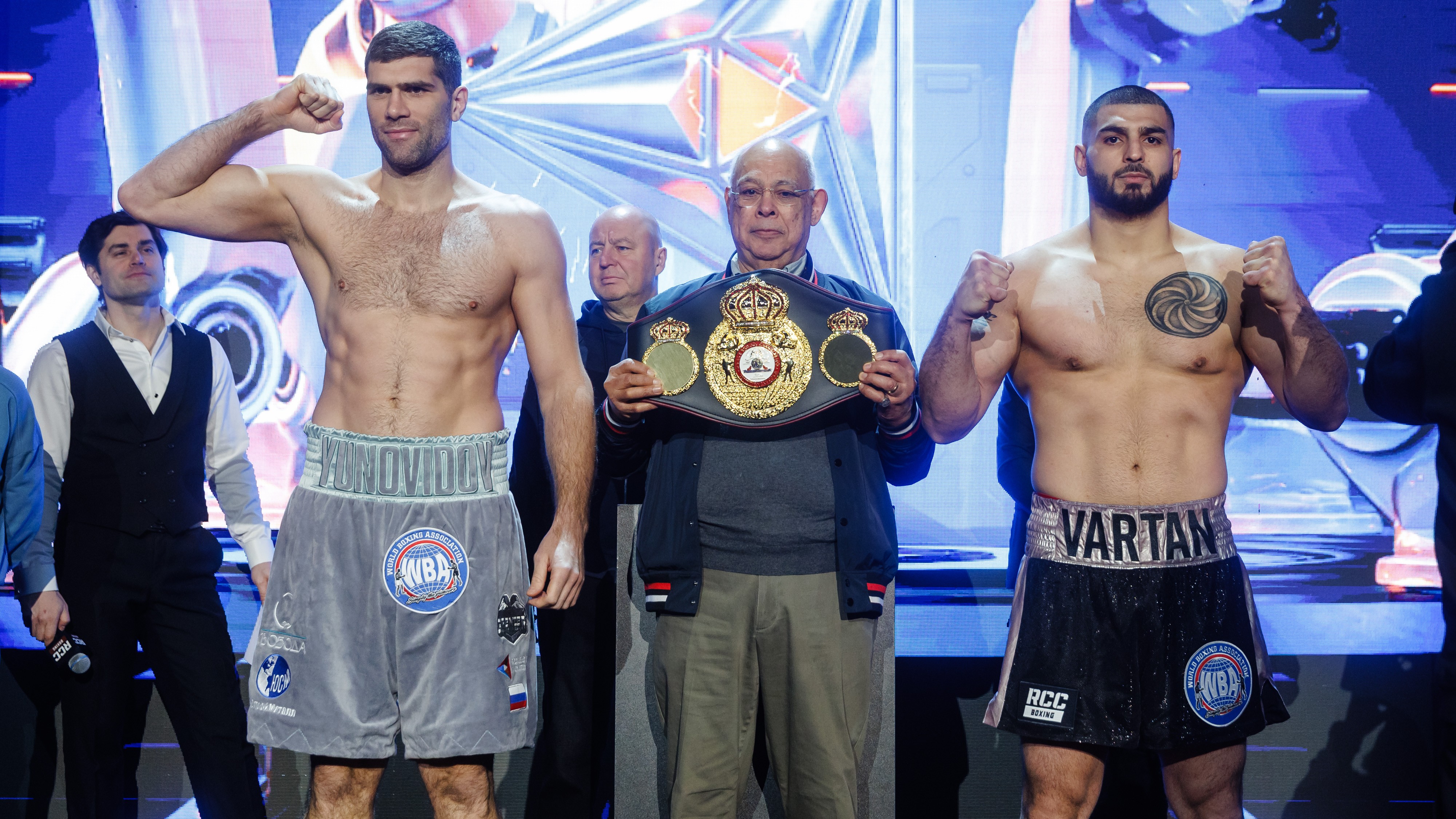 Юновидов завоевал временный пояс WBA в июле в Екатеринбурге на турнире RCC Boxing Promotions, досрочно победив соотечественника Евгения Романова. Соответственно, предстоящий поединок с Арутюняном станет первой защитой пояса. При этом Юновидов в конце октябре в Маниле на турнире «IBA.PRO 11» уступил Крису Томпсону в поединке за титул IBA.PRO Intercontinental в тяжёлом весе. Но результат той встречи пошёл в зачёт IBA.PRO.